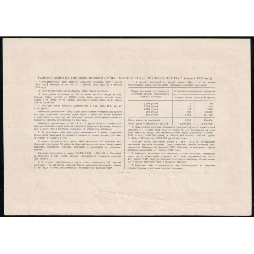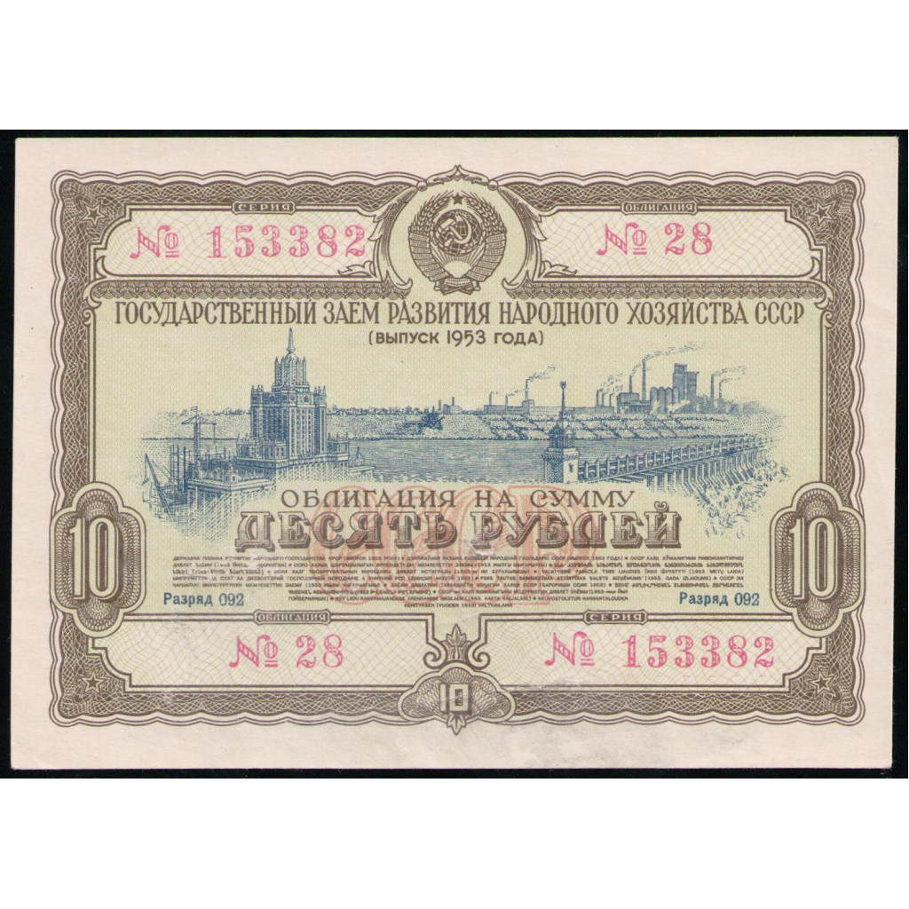 СССР 10 Рублей 1953 год , Облигация