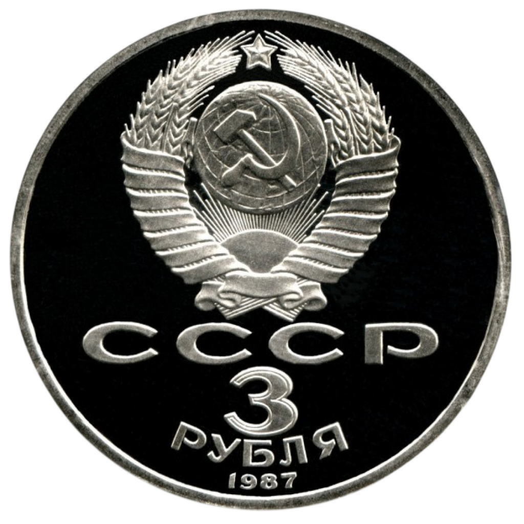 СССР 3 рубля 1987 PROOF Y# 207 70 лет Советской власти в запайке