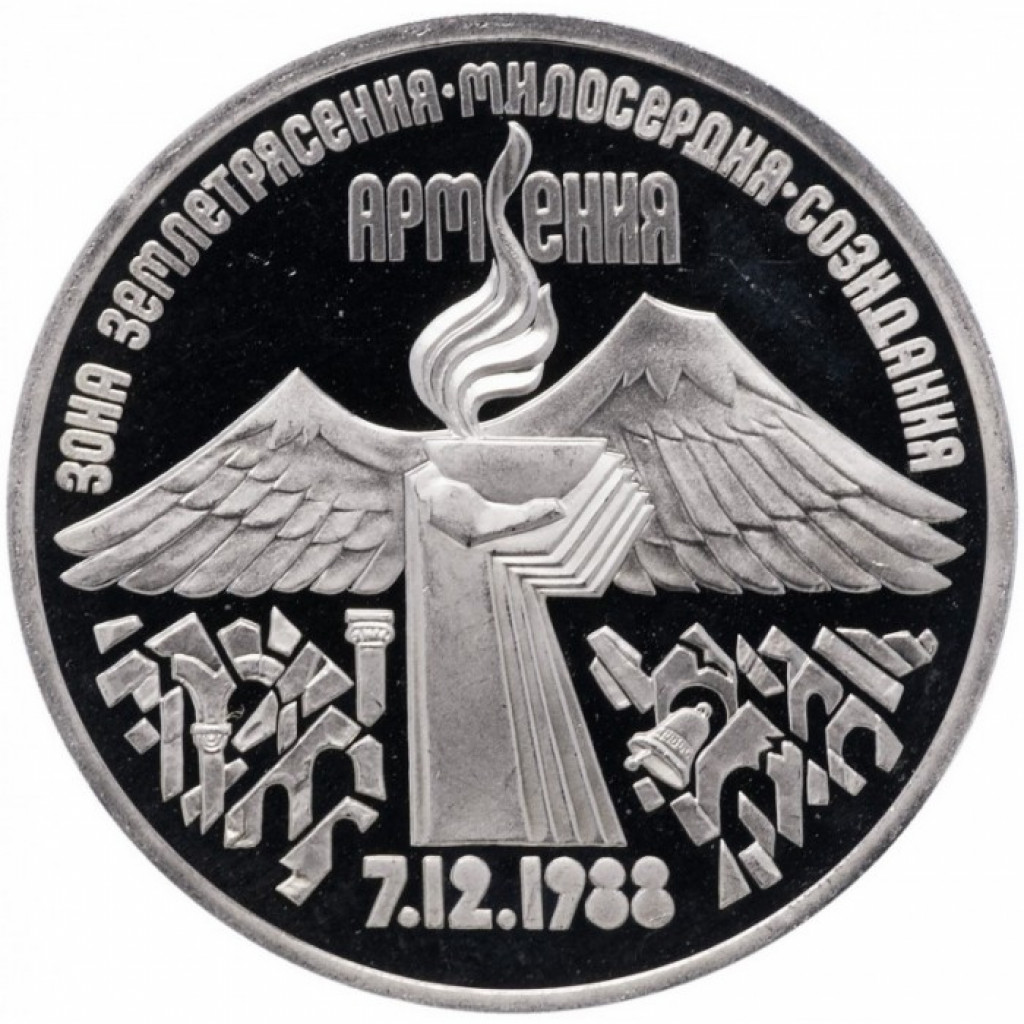 СССР 3 рубля 1989 год PROOF Годовщина землетрясения в Армении в запайке Y# 234