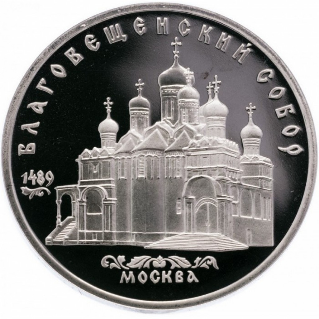 СССР 5 рублей 1989 PROOF Y# 230 Благовещенский собор, г. Москва в запайке