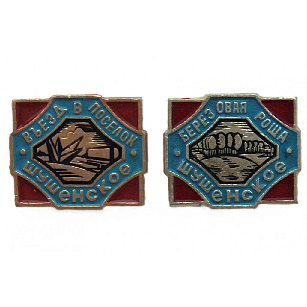 СССР пара нагрудных знаков "Шушенское". Въезд в поселок. Березовая роща (Красноярский край)