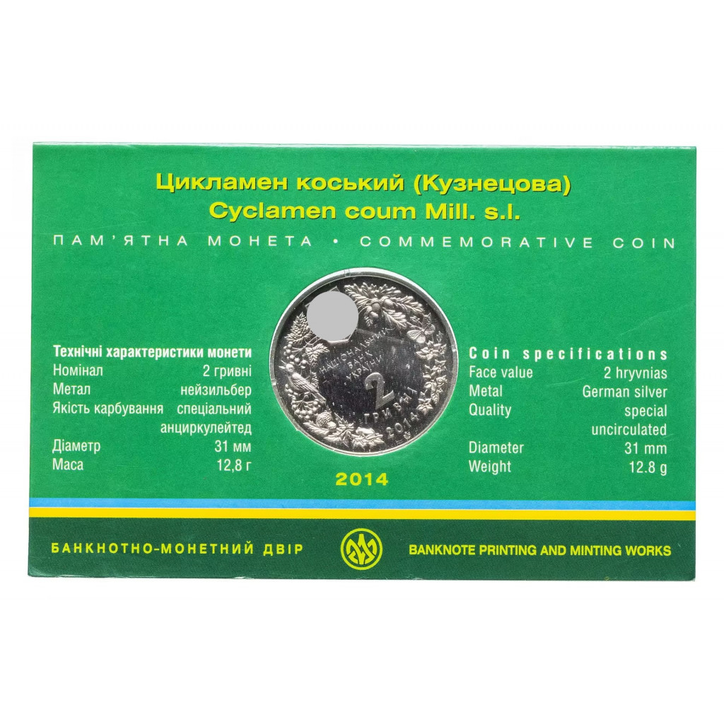 Украина 2 гривны 2014 год Цикламен косcкий (Кузнецова) в сувенирной упаковке BUNC UC# 231