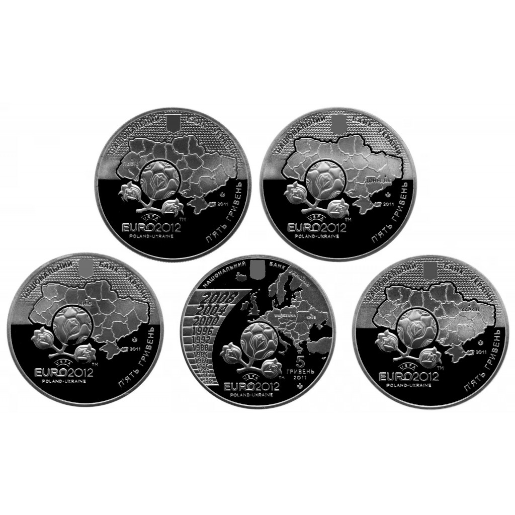 Украина 5 гривен 2011 год Финальный турнир чемпионата Европы по футболу 2012 Набор 5 монет BUNC KM# 647-651