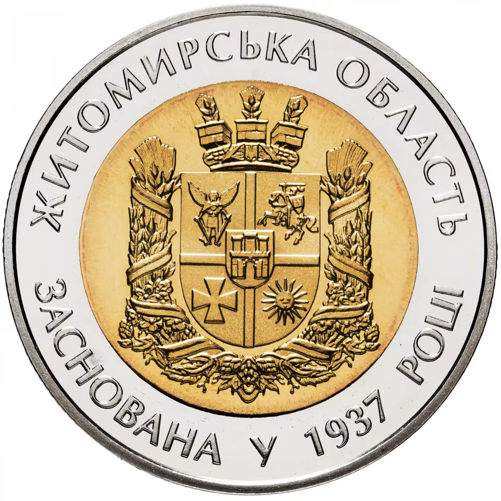 Украина 5 гривен 2012 год 75 лет Житомирской области BUNC KM# 690