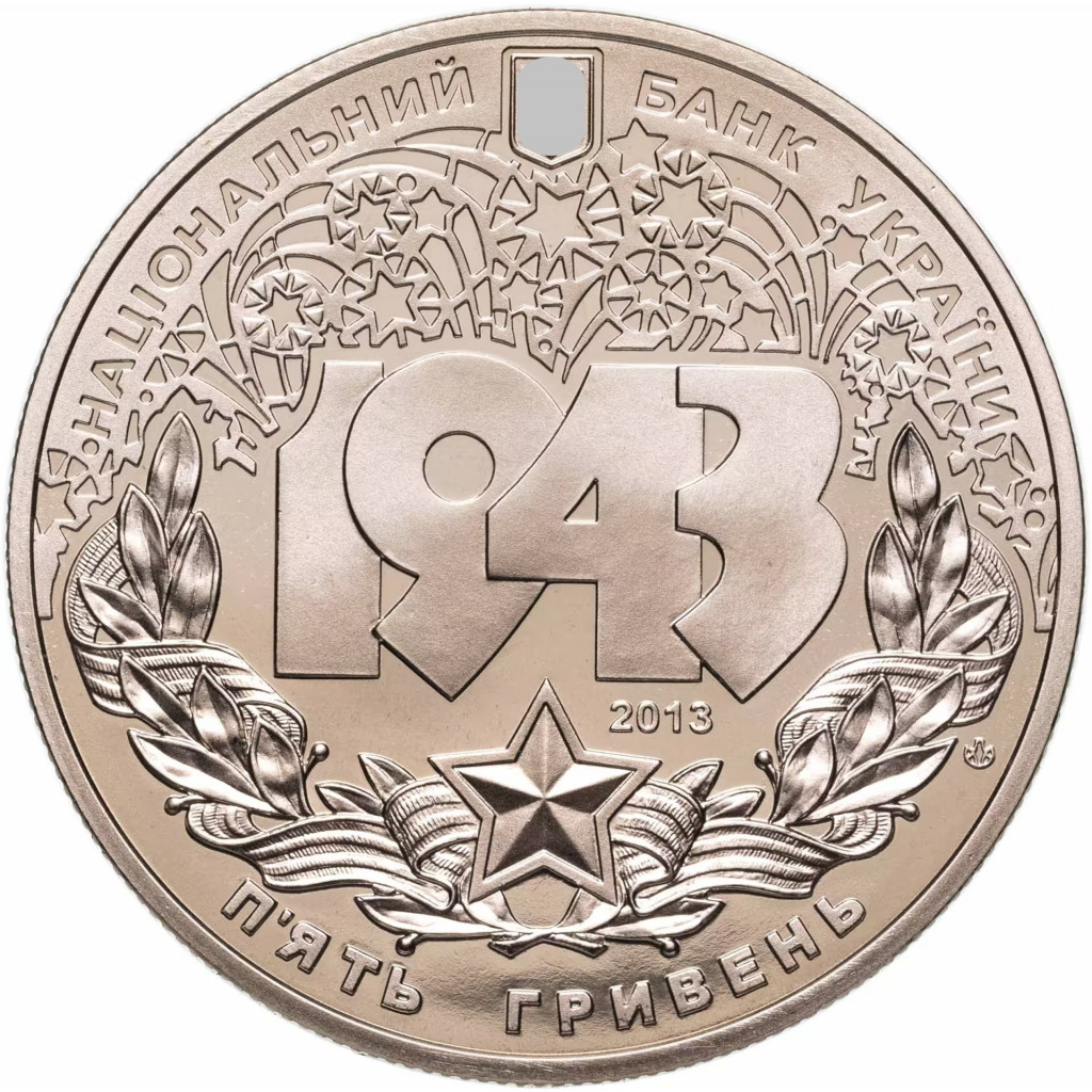 Украина 5 гривен 2013 год Битва за Днепр (70 лет освобождению Киева от фашистских захватчиков) BUNC UC# 224