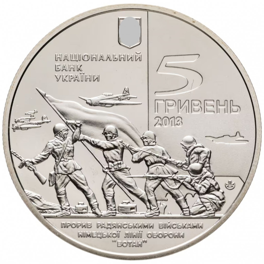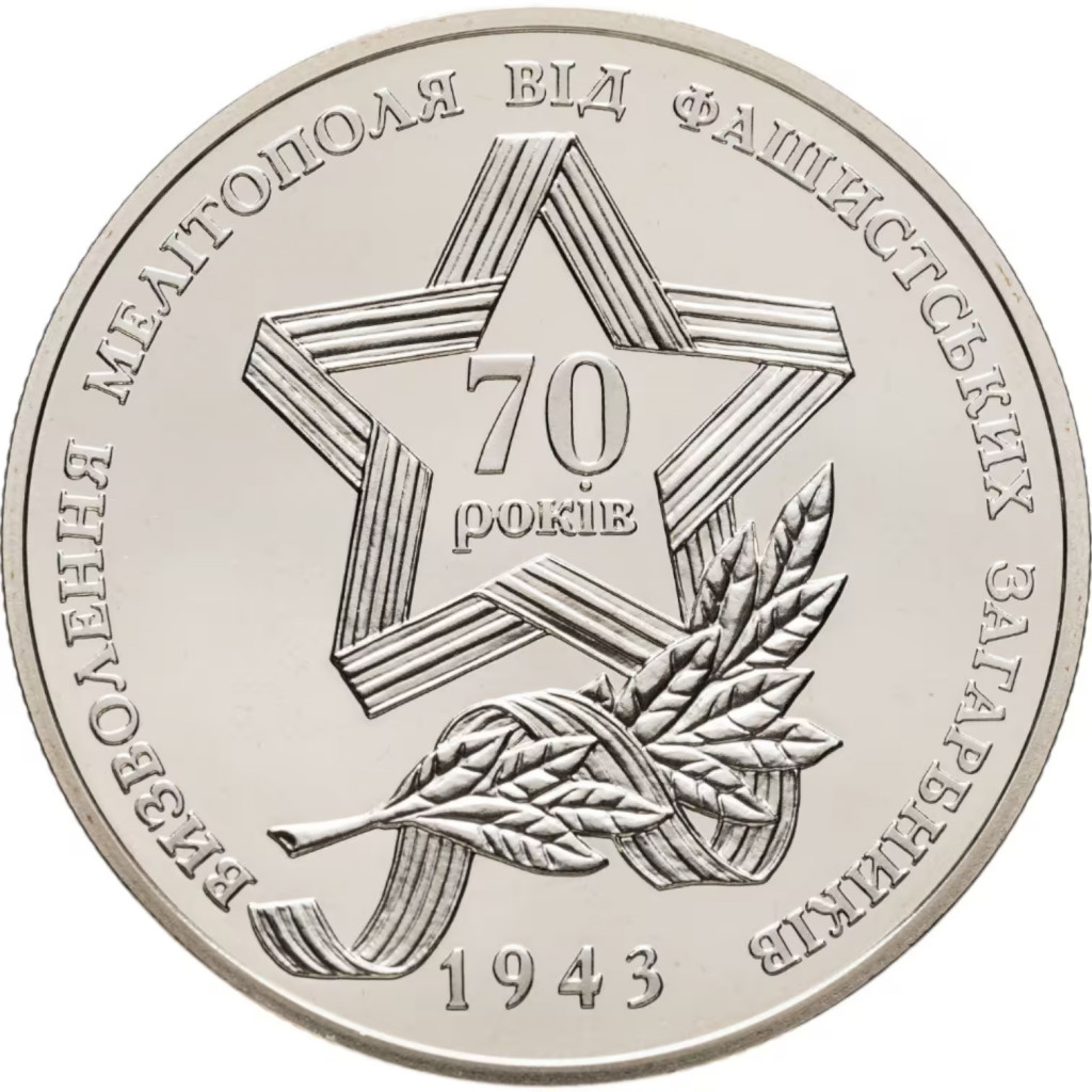Украина 5 гривен 2013 год Освобождение Мелитополя от фашистских захватчиков BUNC UC# 215